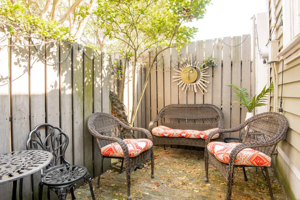 Live like a local while in Charleston in this unique home! You will be amazed at what all is found within this cottage next to the main house built in 1895. Quaint & perfect for your stay. Relax after a full day of sightseeing in your private Charleston patio. ♥ 1 bedroom | 1 bathroom | 1 Queen bed + Roll up mattress ♥ Charleston Style Patio ♥ Easy Walk to King Street (Walk Score of 99) ★ Bedroom + Living Area w/ Smart TVs ★ Outdoor Courtyard w/ Seating + Bistro Set ★ Off-street Parking ★ Bik