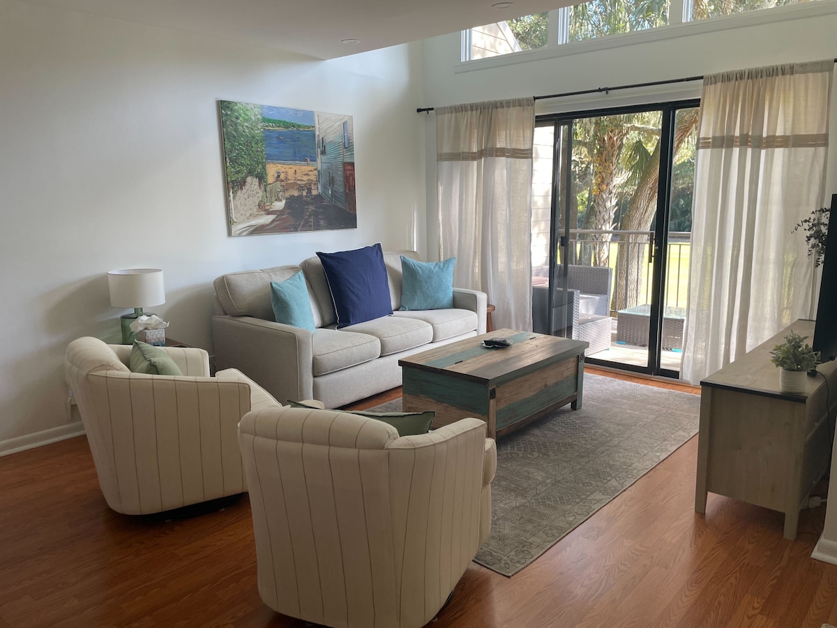 Clean and fresh beach decor. 950 sq ft "treehouse" on beautiful Seabrook Island with lots of extras. Huge floor to ceiling doors and windows that overlook a beautiful lagoon with wildlife galore. Gaze outside for hours and view amazing birds, deer, fish, turtles, and even an alligator or two! Large deck with seating for six. WiFi and three smart tvs. Seabrook Island Business License # BL25-001955. STR permit #STR25-000600 MAXIMUM 2 VEHICLES