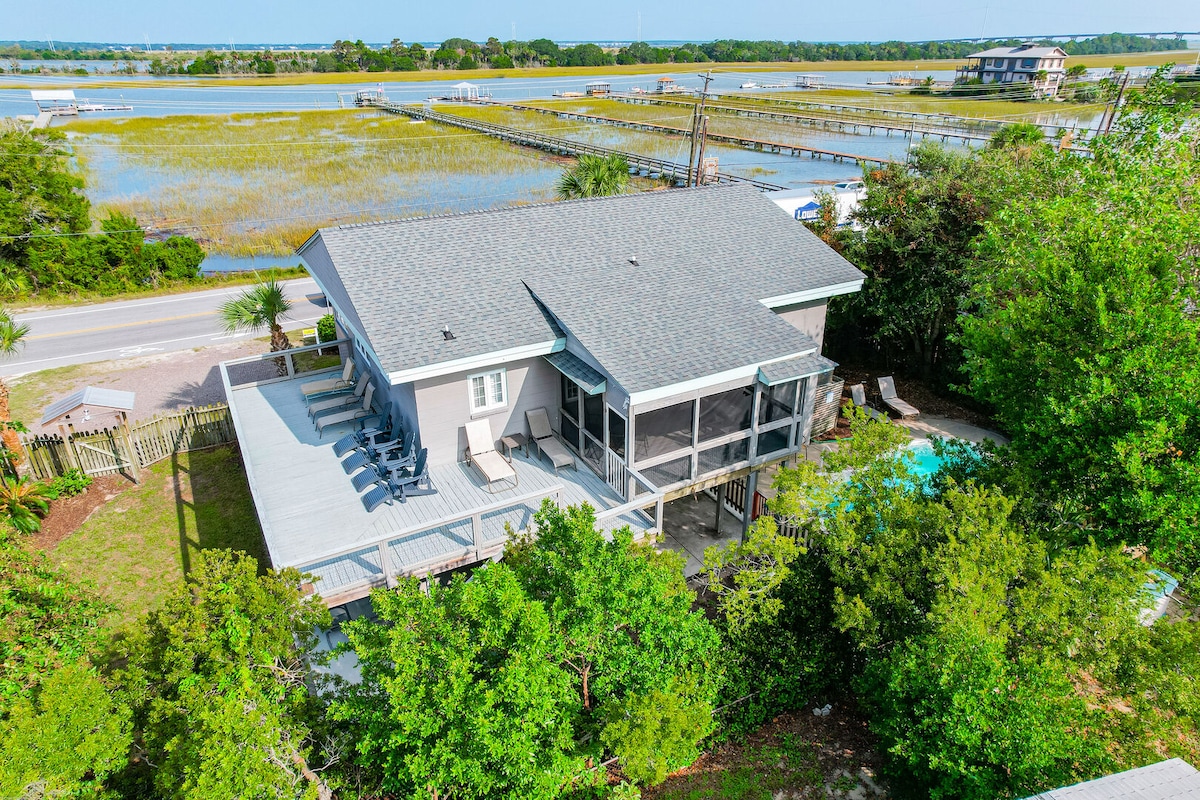 Our home offers some of the most stunning views on Folly! With four private patios, you are able to see amazing wildlife in the marsh, the Intracoastal Waterway, and the Morris Lighthouse. With two king beds, two queen beds, a bunkbed and 3 full bathrooms - there is a plenty of room to Enjoy! Enjoy the hot tub overlooking the marsh, a secluded rooftop room with deck with panoramic views Has Golf hitting bay and workout area and plenty of kids options STR23-0364799CF LIC 20072