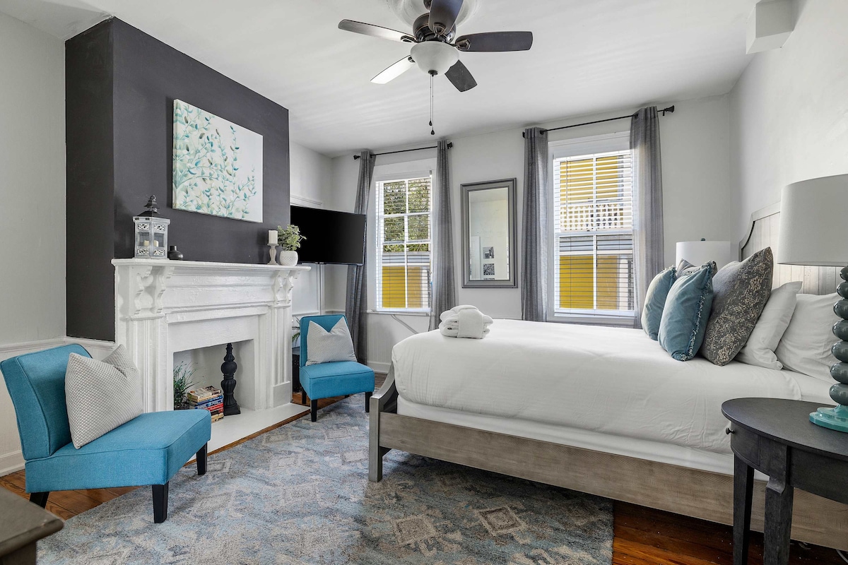 ✨ Welcome to The Palms of Charleston – Suite C! 🌴 ☀️ Large Courtyard with Hot Tub 📍 1 Block to King St – Walk to Charleston’s Best Dining, Shopping & Nightlife 🌿 Balcony with Seating 🚙 Off-Site Parking for 1 Vehicle 🛏️ Comfortable Mattresses 📺 Smart TV – Streaming Included 🛜 High-Speed WiFi + Desk 🫧 Washer/Dryer 🍳 Fully Stocked Kitchen ☕️ Local Coffee + Supplies 🚿 Hair Tools Provided 🎶 Record Player + Game Console