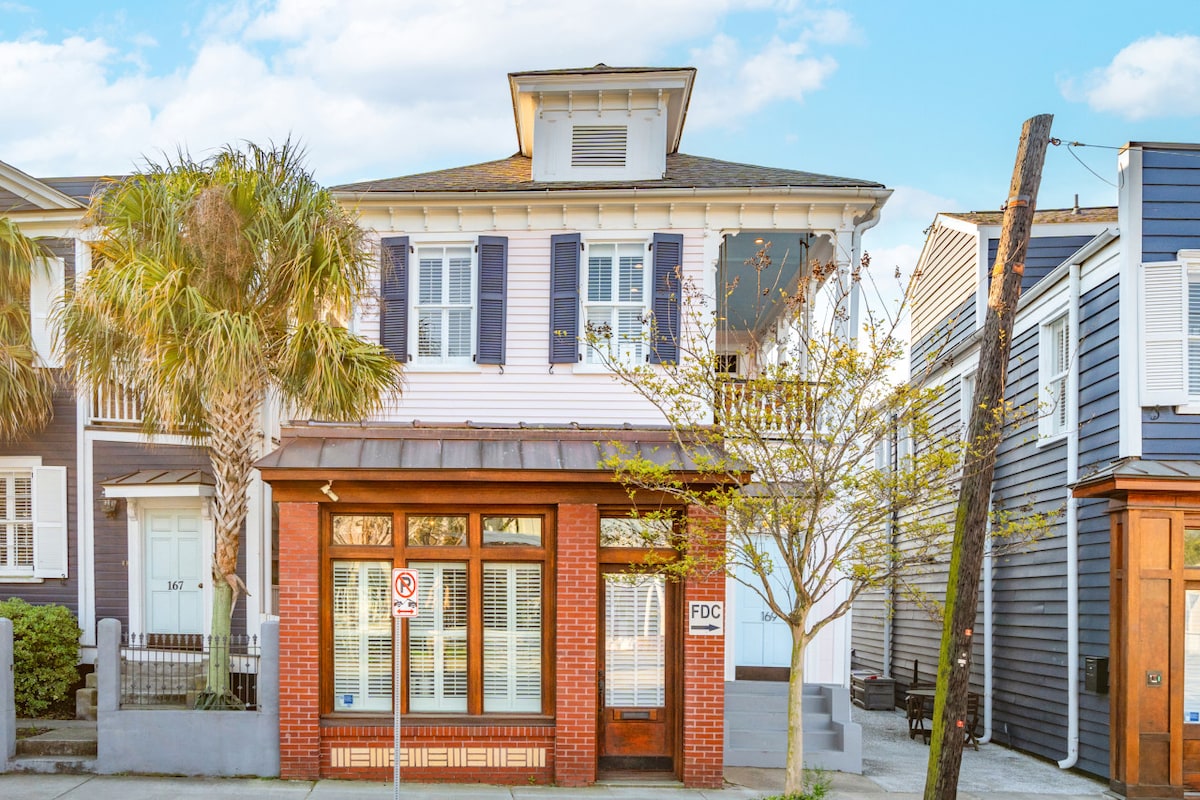 Prime 2-bedroom Airbnb in historic downtown, steps from KING St. Newly renovated with ultra-fast Wi-Fi and workspaces. Free parking for 2 cars. Experience Charleston's vibrant nightlife and top restaurants in the HOT Upper King St area, just a minute's walk away. Note: Soundproofing helps, but light sleepers might notice weekend noise. Ideal for experiencing downtown life. Note there is Construction on the king St side currently, which is now inside so less noisy now. License: OP2018-00153.