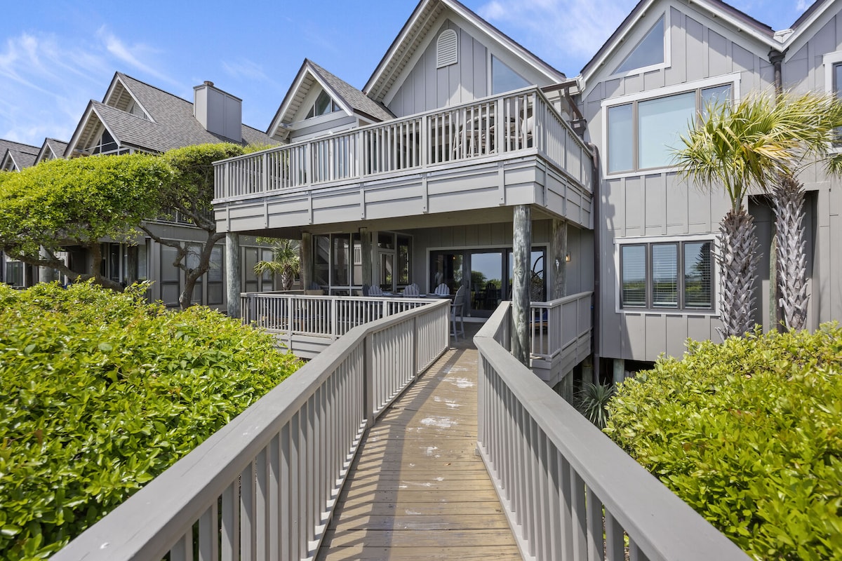 This home is NOT a "17-min walk to the beach" like the Airbnb system automatically states. If you're in the house, you're ON THE BEACH, listening to the waves crashing in front of you...greeted by long driveway bordered with towering palms, this property features a ton of outdoor entertaining space, including double porches & a rooftop terrace with panoramic views of ocean & marsh. Home is perfect for large gatherings. Come see why this beachfront gem has been a favorite on The Edge of America!