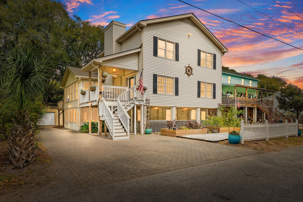 This is the upstairs 4BR/2BA Unit of a duplex located just 2 blocks from the beach, Blackbeard's Isle offers spacious yet warm and inviting accommodations on the vibrant Isle of Palms, SC. Not only steps from the ocean but just a few blocks from the exciting downtown area of IOP, stacked with fantastic restaurants, fun beach bars, and the famous Windjammer music venue. The outdoor spaces of the home perfect for a post beach beverage or a nice meal at home on the large outdoor dining room table.