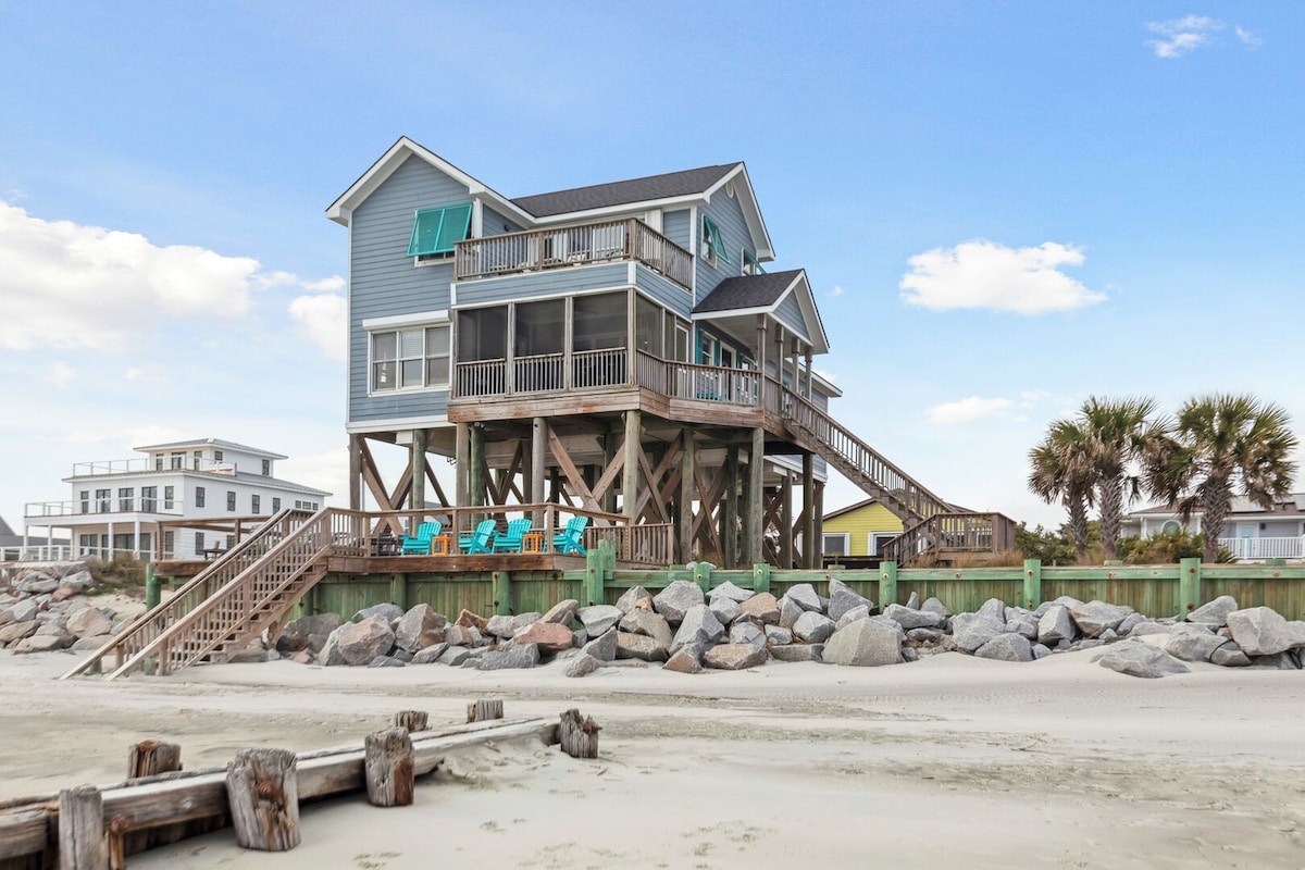 This spectacular single-family home sits on a large, private, maturely-landscaped lot. The expansive front yard is well-appointed with the Lowcountry's famed majestic Grand Oaks and Folly Beach Sabal Palms. This home was professionally and meticulously designed to include all modern amenities and upgrades while retaining the simple and quaint nature of a classic Folly Beach home. A quick walk or bike ride to Folly's best dining, shopping and nightlife, and only steps to the Atlantic Ocean.