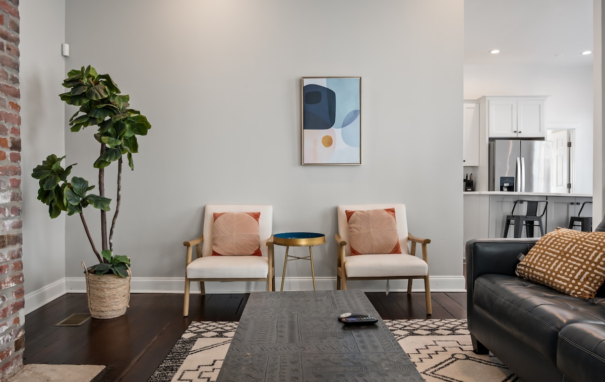 Find an oasis of calm in this second floor, 2 bedroom, 2 bathroom condo. The open living room/ kitchen provides ample seating for 6. Modern style and amenities can be found throughout this new condo. Completed in 2018 this rental offers something that most downtown rentals cannot. Stocked with a full kitchen, living room (with queen sofa sleeper), washer & dryer. Perfect for couples or traveling professionals! Operational License #:OP2018-00352 Business License BL018136-01-2020
