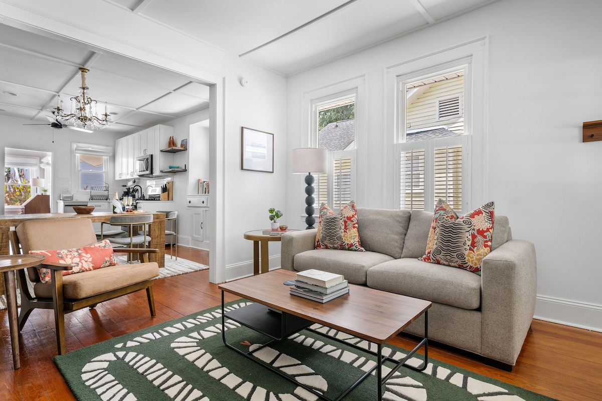 Welcome to our chic 2 bedroom + 2 bath second floor unit just steps away from Charleston's historic Hampton Park. Enjoy sunset bike rides, 5 minute walks to downtown's hottest restaurants, and views of the Citadel from your front porch. This stylish home comes equip with a fully stocked kitchen, beach towels, games, baby equipment, workspace, washer/dryer, WiFi, off-street parking, bikes, and much more! Live like a local in Charleston's most coveted neighborhood.