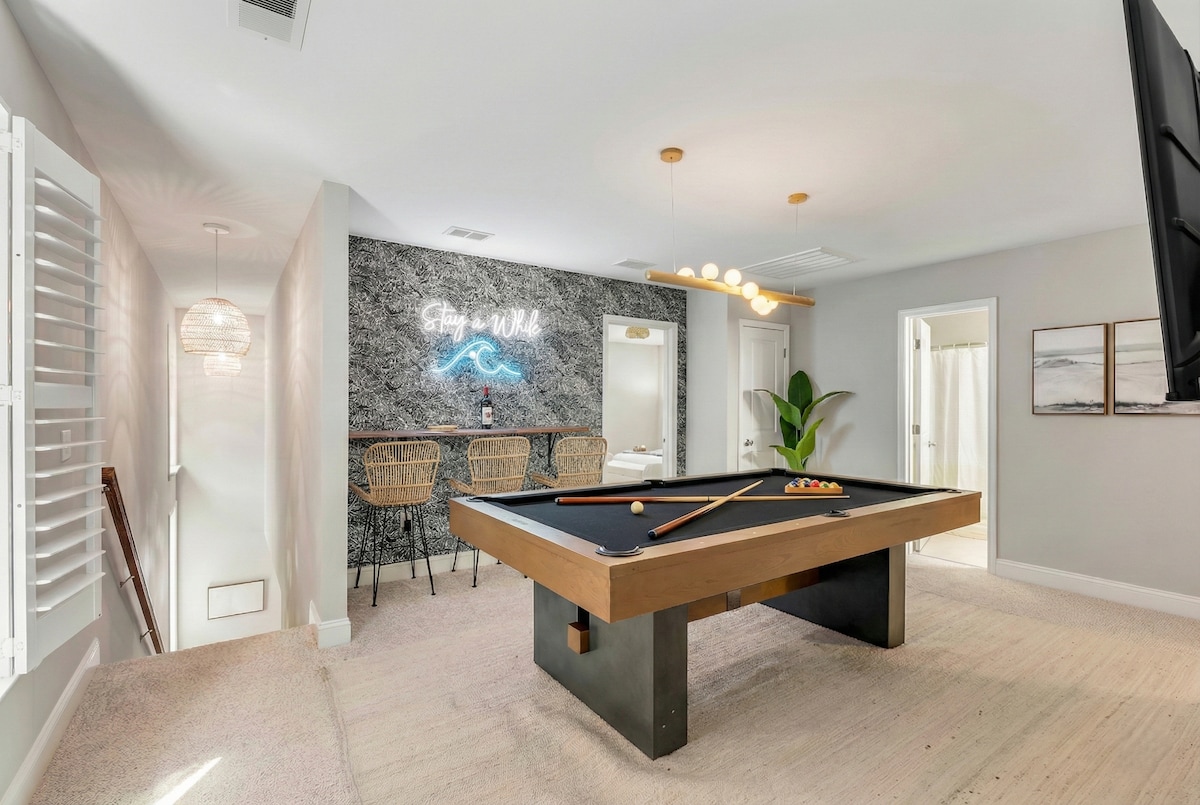 Escape to your private Charleston oasis with a saltwater pool & game room! This modern 4BR home comfortably fits 8, blending family fun with sophisticated style. Enjoy a fully equipped kitchen, a dedicated workspace, and a fenced backyard. Just a short 20-minute drive to historic downtown Charleston, it's the perfect retreat for an unforgettable getaway.