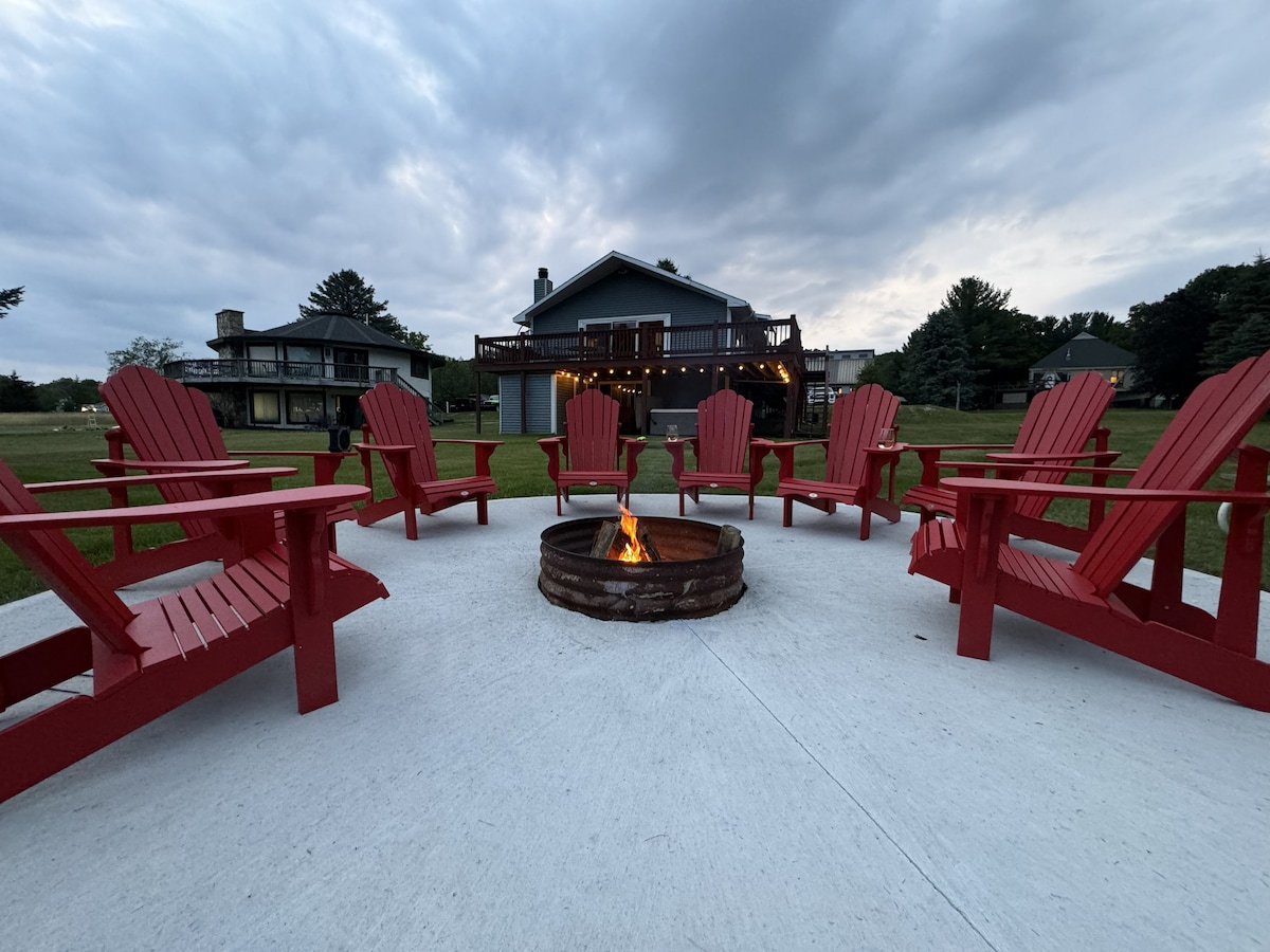 A great location, northside. A must see. Across the street from Mt McSauba nature preserve trails for hiking, 5 minute walk to Lake MI dunes with a beautiful beach & a 2 minute walk to watch the sunset. 2 miles from downtown. Wheelway Bike path & disc golf. Very cozy atmosphere with a fully equipped kitchen, bring your essential oils and relax in the jacuzzi tub, very comfortable beds, fold down couch and cot if needed , washer/dryer, relax by the wood fireplace Sept-May, Fire pit May-Sept