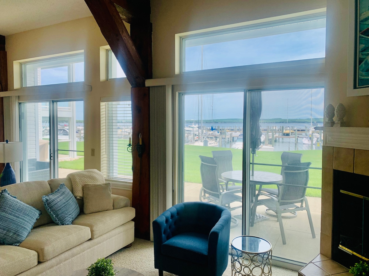 Beautiful Boyne City!! This is is a lovely space with a beautiful view of Lake Charlevoix on a private deck with patio and a Weber Grill. The kitchen has a bar with dishwasher, ice maker, mini fridge, microwave and everything you need to cook. Located with a 4 minute walk to Boyne City!! Great for weekend warriors that love to ski, boat or just want to see the fall colors.