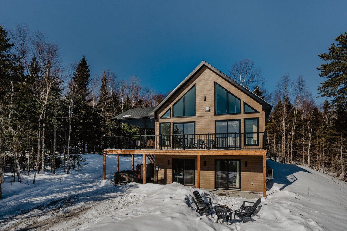 Le Petite Charlevoix delivers winter luxury in Charlevoix's mountains. This 3-bedroom chalet for 6 guests features a 6-person hot tub, outdoor sauna for 4, gas fireplace, and wood fire pit, perfect for après-ski relaxation after a day on nearby slopes. The fully equipped kitchen opens to a sun-filled living area with mountain panoramas, while the spacious terrace offers starlit soaking sessions. Seven minutes from Baie-Saint-Paul's galleries and dining.