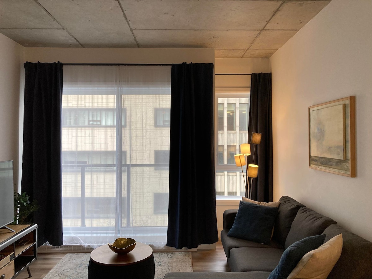 Bienvenue à l’espace cozy! Un condo neuf, confortable et accueillant au cœur du centre-ville de Québec. Bien équipé et décoré avec goût dans un style chaleureux, notre condo possède tout le nécessaire pour un séjour reposant digne de l’hôtel. L’espace cozy c’est : - Une localisation exceptionnel dans la ville près de tous les incontournables -Un stationnement intérieur -Une terrasse avec BBQ commun -Un gym -L’internet le plus rapide Et bien sûr, des hôtes attentionnés ! :) CITQ : 311335