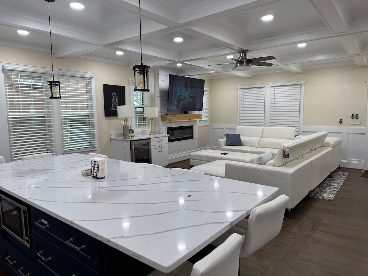 Luxury 4-story townhome w/Sonos Surround Sound speaker system. Enjoy Charlottes skyline & stadium views from private rooftop deck. Modern decor provides space & comfort you need to sit back & relax after a fun filled day in Charlotte. Centrally located. 8-10 min to Optimist Hall, NODA, & Plaza Midwood. 3 BR, 4.5 bath, Peloton in Master. Garage-EV Charger & Torque universal gym. Walkable to Trust Field, Bank of America Stadium, & more! Ask about our TESLA rental, & PRIVATE CHEF for hire!!