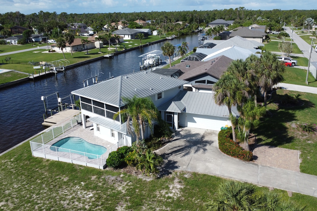 Welcome to SUNSET MANOR! This waterfront property sits on a beautiful and spacious corner lot with all the amenities including a heated pool with a tranquil waterfall feature. The preserve across the way provides the ultimate private oasis. This is one of THE BEST views in all of Charlotte County! The house is located in a beautiful and quiet waterfront community - just a few miles from the beach, Boca Grande, Punta Gorda, Fort Myers, and more. World-class Florida living at your fingertips!
