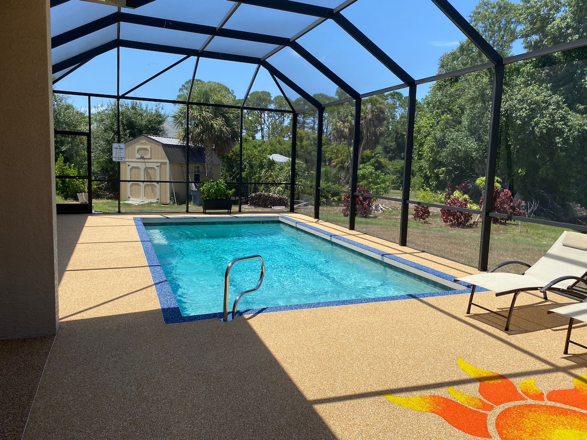 Complimentary golf cart INCLUDED. With a short stroll to warm sand and crystal waters of Englewood Beach. With all the the modern comforts in place all you have to do is relax on your short stay or extended visit. Updated 2/2 main house and 1/1 Casita with a private entrance. Walk right out the front door to the new expansive pool patio featuring a saltwater heated pool, outdoor kitchen and plenty of furniture for spending time soaking in the warm Florida sun!