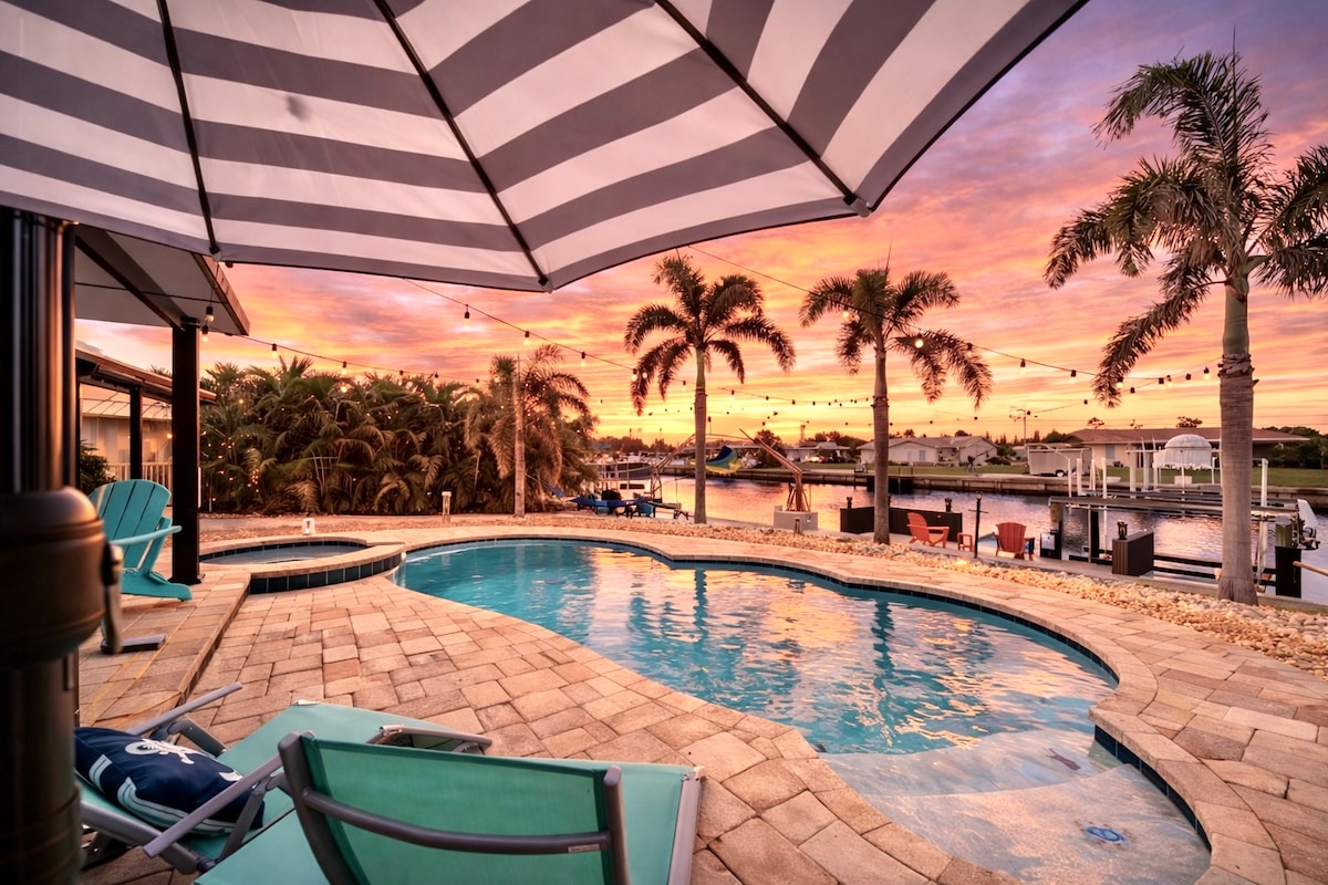 Experience waterfront luxury with an updated heated pool, spacious lanai, and pool deck in this updated home with a split floor plan in a tranquil neighborhood. Conveniently close to activities and superb local restaurants, don't miss the breathtaking sunrises and sunsets! Experience the ultimate in relaxation with our newly remodeled Pebble Tec custom-tiled pool. Heated at no extra cost, indulge in a soothing swim anytime, perfect relaxation year-round. Bikes and helmets are provided.