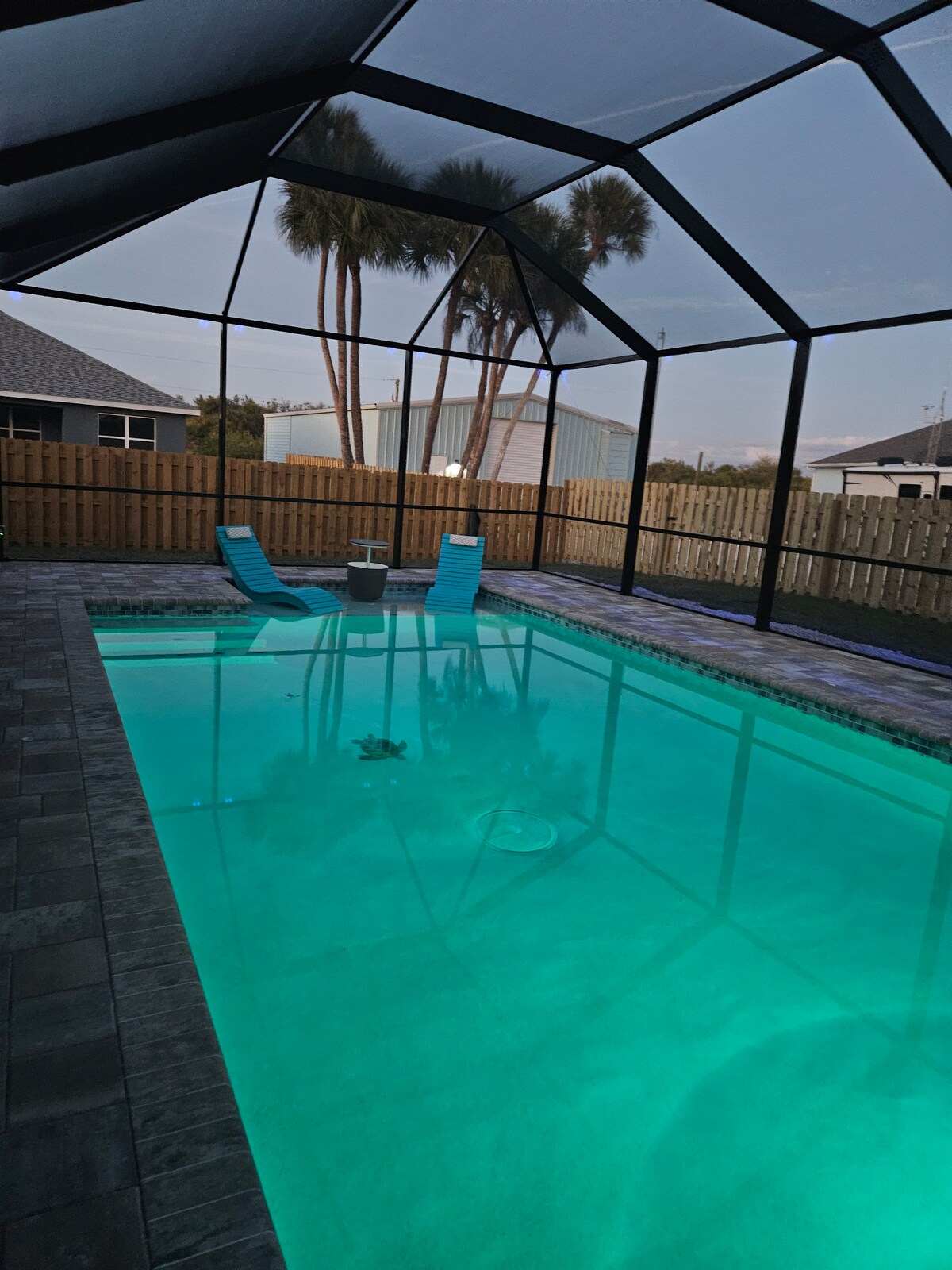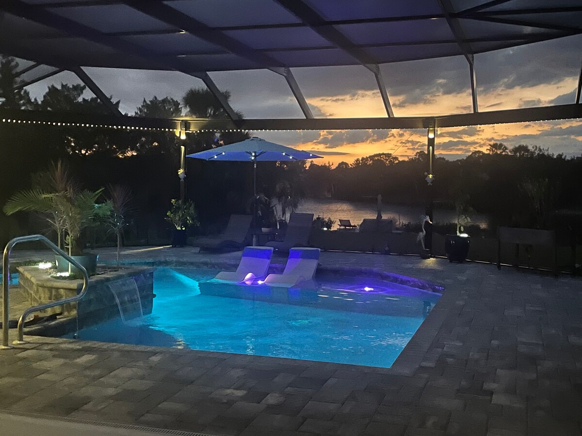 Discover our tropical oasis nestled by the waterside, featuring a canal dock, rejuvenating pool, and lush garden. Two cozy bedrooms, a well-appointed bathroom with jetted tub, and a kitchenette await. Step into the fenced backyard with an outdoor barbecue and dining area, perfect for al fresco meals surrounded by vibrant foliage. Enjoy moments by the pool or unwind on the canal dock. Welcome to your tranquil retreat by the tropical waterside! This is a divided pool house with private entry.
