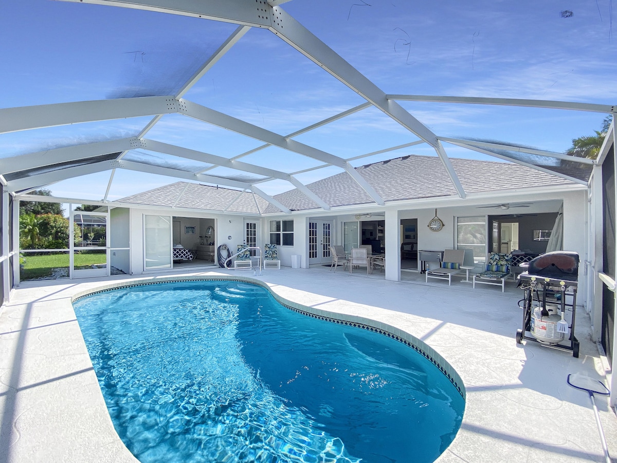 Instantly be in vacation mode upon arriving at this home! You’ll have no problem relaxing here. The three-pocket sliding door opens the living room up to the lanai and pool area for a truly unique open living area. There's plenty of space to relax and lounge around the pool. This home comes equipped with everything you’ll ever need for a vacation home away from home. *Please be aware street parking at any time is not permitted per HOA Rules. Boat parking is also never allowed.*