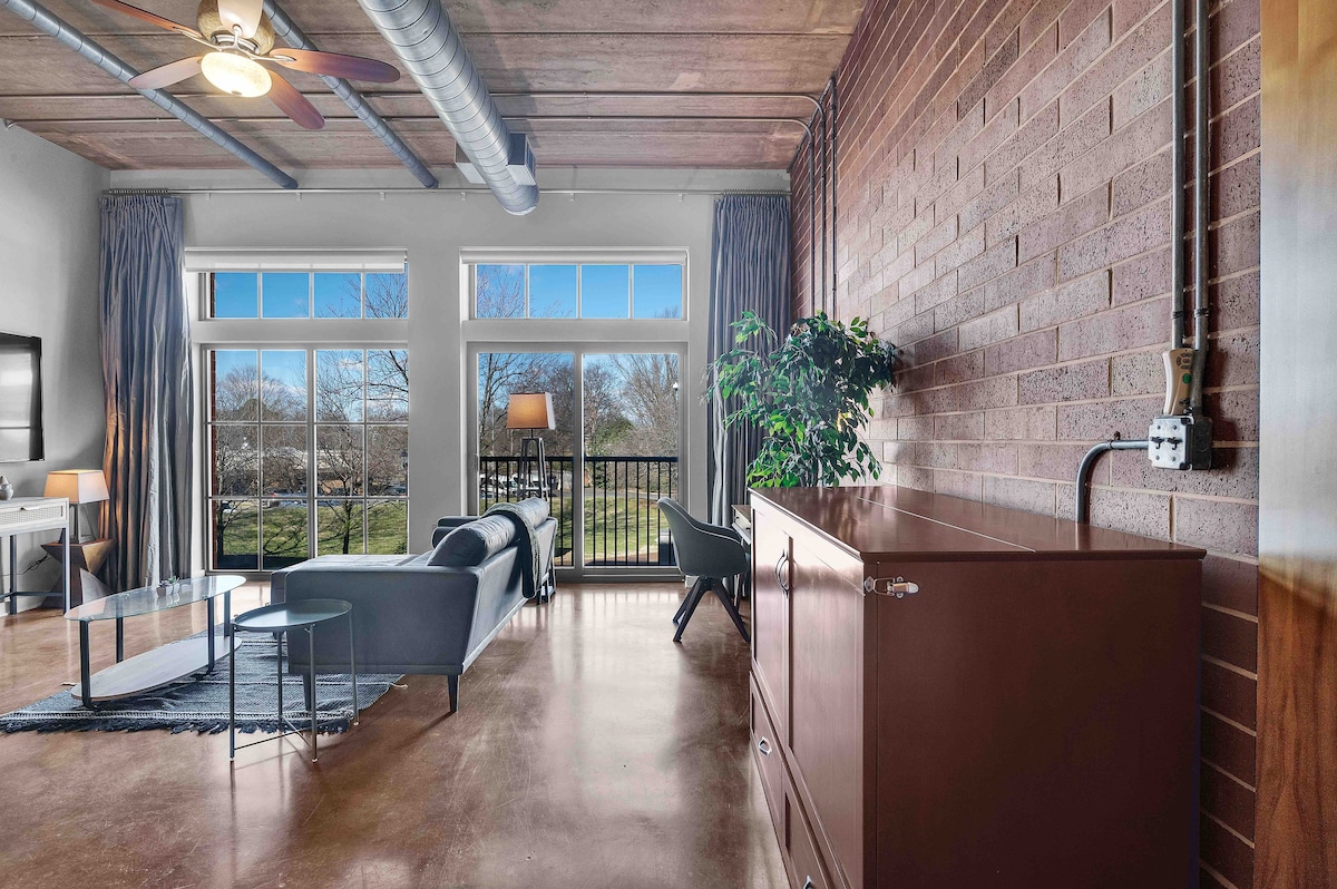 7 day minimum *Strict non-smoking policy* Enjoy urban living in this 1BR/1BA uptown condo! Queen bed in the bedroom. High-speed internet & free live television on a 70'' screen! The unique exposed brick, high ceilings and concrete floors give the space a chic industrial feel. Ideal for exploring uptown Charlotte! Ideal for couples, solo travelers or small families. 2 min drive/19 min WALK to Panthers Stadium 3 min drive/18 min WALK to Spectrum Center.