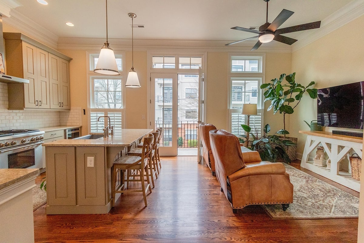 3 gorgeous ensuite bedrooms make this townhome perfect for couples and families! -2 KINGS, 1 queen bedroom with TVs -Fully loaded & stocked chef's kitchen w/ cocktail & coffee bars, wine fridge -Rooftop for lounging w/ firepit and outdoor lights -Record player -Close to breweries, pickleball, golf, light rail (Scaleybark stop) -Garage and free street parking Just minutes from Uptown Charlotte & South End Walkable to breweries, restaurants, bars, pickleball, bowling & Light Rail.