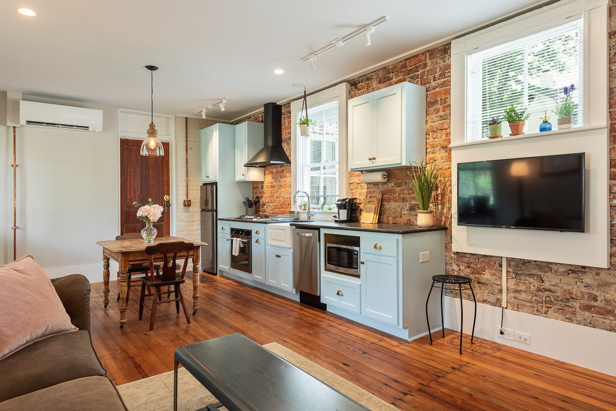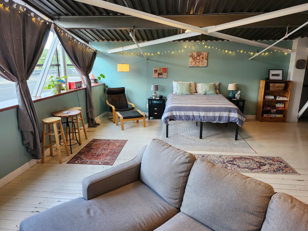 This unique & fun studio apartment is above FIREFLY Restaurant + Game Room, located in Charlottesville's Woolen Mills neighborhood. You're half a mile to downtown Cville, Ting Pavilion, the Rivanna River & trail, and the popular Belmont neighborhood. Major perk: while you're here you'll enjoy 20% off all food at FIREFLY - Open for lunch & dinner Tues-Sat. If you'd prefer to cook, there's a full kitchen in the apartment. Sleeps up to 5.