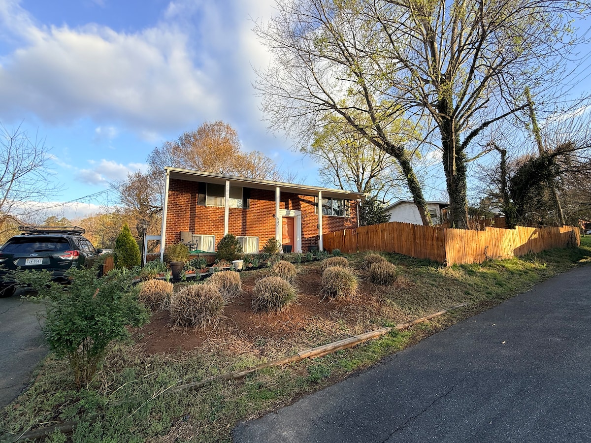 This centrally located home is right off the I-64 exit, just 1 mile from UVA, the Downtown Mall, & Wegmans. Monticello, John Paul Jones Arena & wineries are just 10mins away. Blue Ridge Parkway 30mins. Walk to park/trails & CAT public bus stop. Be close to it all here! Accommodations include 3 bedrooms, fully stocked kitchen w/ coffee, firepit, grill, fireplace, pack-n-play. Main bedroom has an adjustable bed to take the pressure off your back, TV, PlayStation 2 & desk. Pet Friendly!r