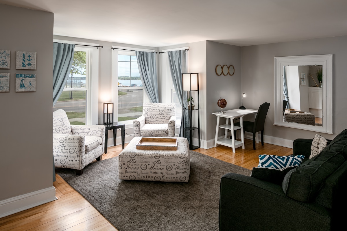 Unwind in this newly built main level suite overlooking the Charlottetown Harbour and the picturesque Victoria Park and just a short stroll to downtown shops & restaurants. Modern architecture at its finest, this loft has spared no expense. Floor to ceiling windows look out to sailboats and sunsets. Appointed with the luxury traveller in mind, this home is equipped with high end appliances, marble countertops, luxury linens and a king size bed for a truly restful sleep and stay. License #4000033