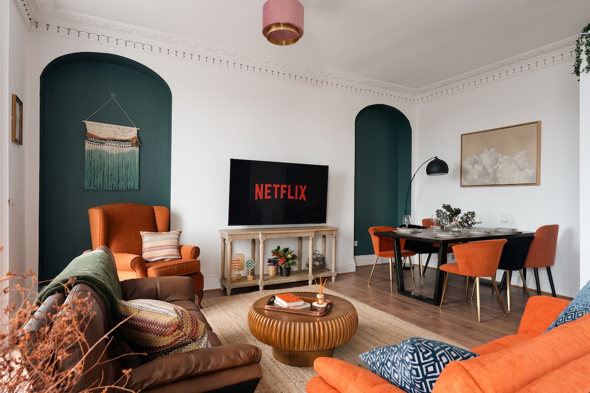 If 'Grand Designs' is your benchmark, go no further. St Paul's Chapel is a step into playful luxury. You can sleep in an idyllic fairytale fourposter, in the very spot the choir used to sing. The open plan simplicity of the space is designed to work for multipurpose activities. Wether you are dining with 6, watching the cup final on the giant wall mounted TV with soundbar, or turning up the tunes with the log fire going and the lights turned low..you decide.