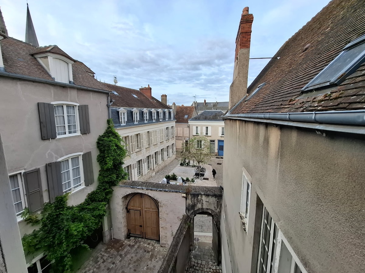 Studio en plein quartier historique de Chartres, à 3 minutes à pied de la Cathédrale, de tous les commerces et moins de 10min de la gare à pied. La rue des écuyers est une rue piétonne, très calme, une des plus belle et typique de Chartres. Lit 2 personnes et canapé convertible pour 2 personnes. Wifi, freebox et Netflix gratuits. Cuisine aménagée avec plaque induction, four et micro onde combinés, lave vaisselle, Nespresso, bouilloire, grille pain. Arrivée indépendante avec boîte à clefs.