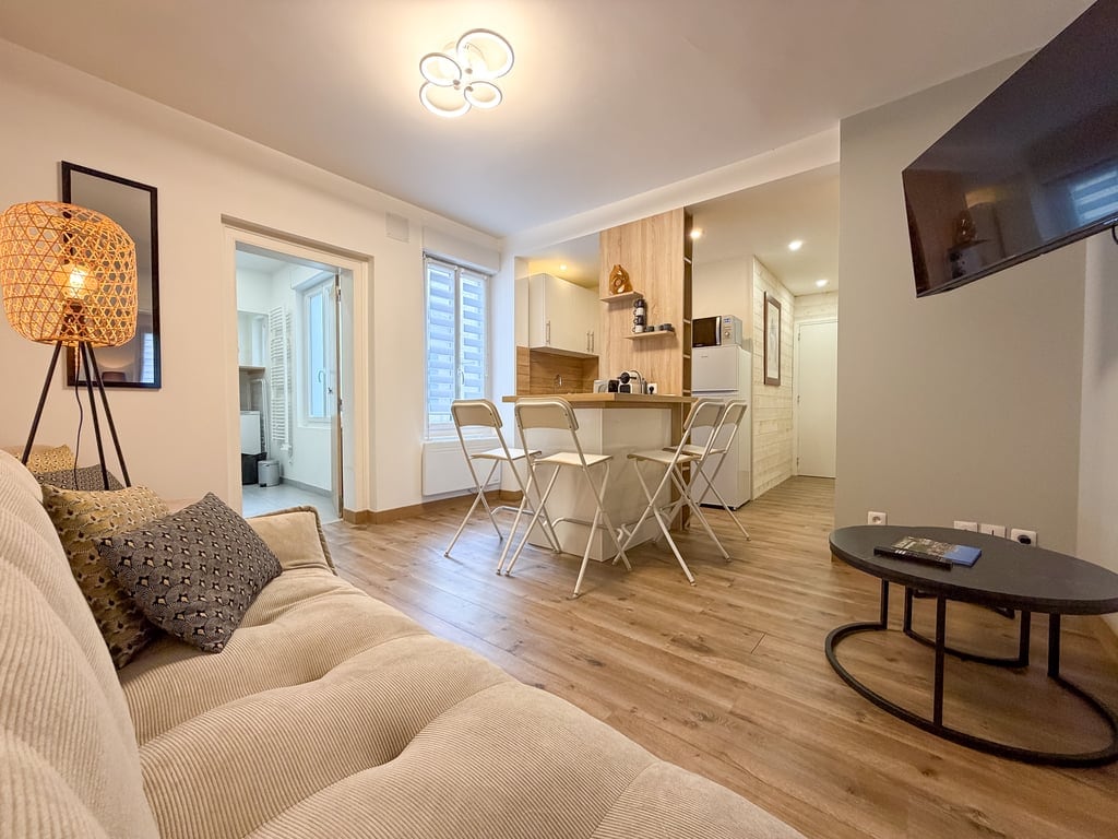 Bienvenue dans notre appartement 2 pièces de 45 m² proche hyper centre, à 7 minutes de la gare et 10 minutes de la cathédrale à pied, idéal pour un séjour confortable et relaxant pouvant accueillir jusqu’à 4 voyageurs. Entièrement rénové en Juillet 2024, cet appartement lumineux et moderne se trouve au premier étage d'une petite résidence de trois étages. Il offre une agréable hauteur sous plafond de plus de 3 mètres et est traversant pour une belle luminosité tout au long de la journée.