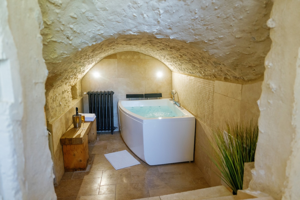 Logement idéal aussi bien pour l’hiver que l’été Sauna et Balnéothérapie privatif (intérieur) L’espace balnéo a été créé sous la pierre à l’emplacement d’une ancienne cave à vin. Une pièce a été consacrée pour l’espace détente, avec luminotherapie, sauna et deux gros poufs pour se relaxer. Le sauna est un vrai sauna nordique avec poêle a pierres chaudes à l’intérieur. Vous avez aussi dans le salon un superbe poêle à bois pour les nuits d’hiver.