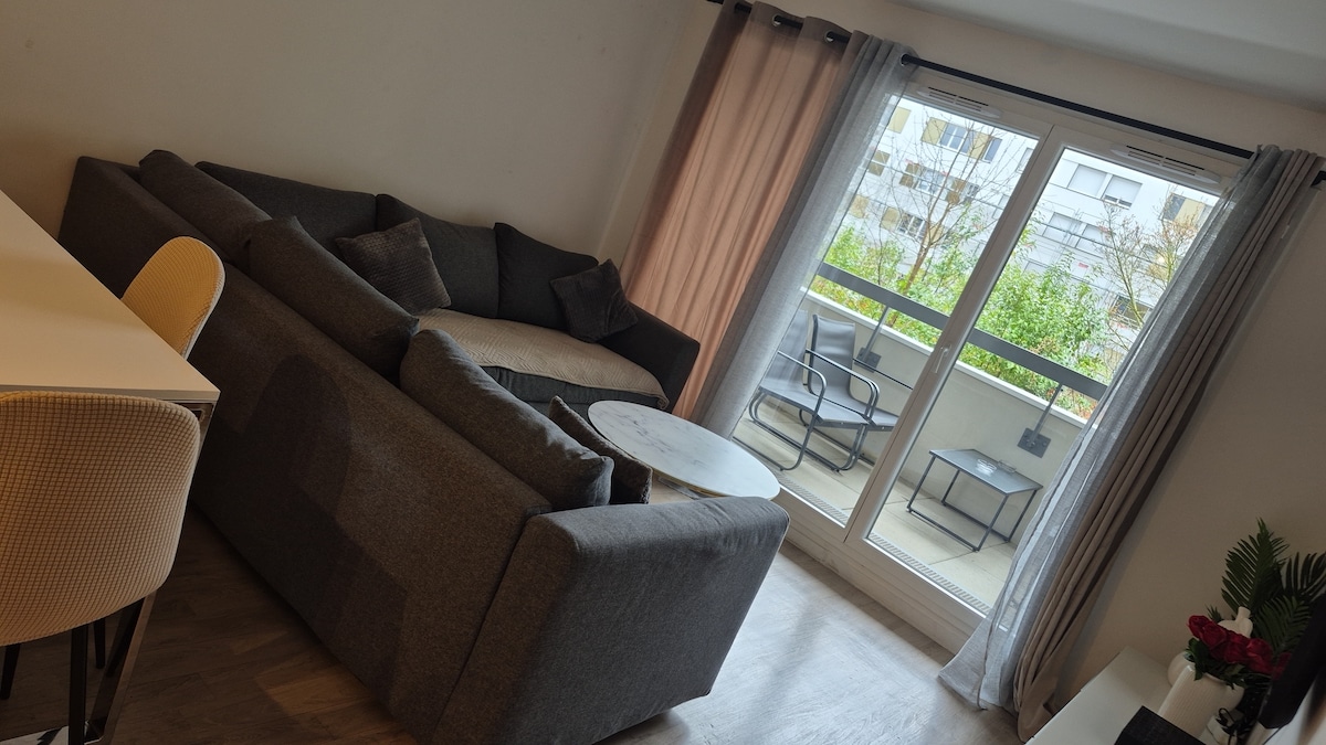 2-room apartment of 50m² and a 7m² balcony located on the first floor of a very quiet residence. This apartment is ONLY for travelers... NOT SUITABLE FOR PARTIES It consists of a living room of more than 22 m², an entrance with cupboard, a kitchen, a bedroom, a bathroom and a toilet, fully equipped to live from 1 to 5 people. Montigny is near Paris, the Palace of Versailles and the velodrome. The train station for Versailles, La Défense or Paris is a 10 mm walk away.