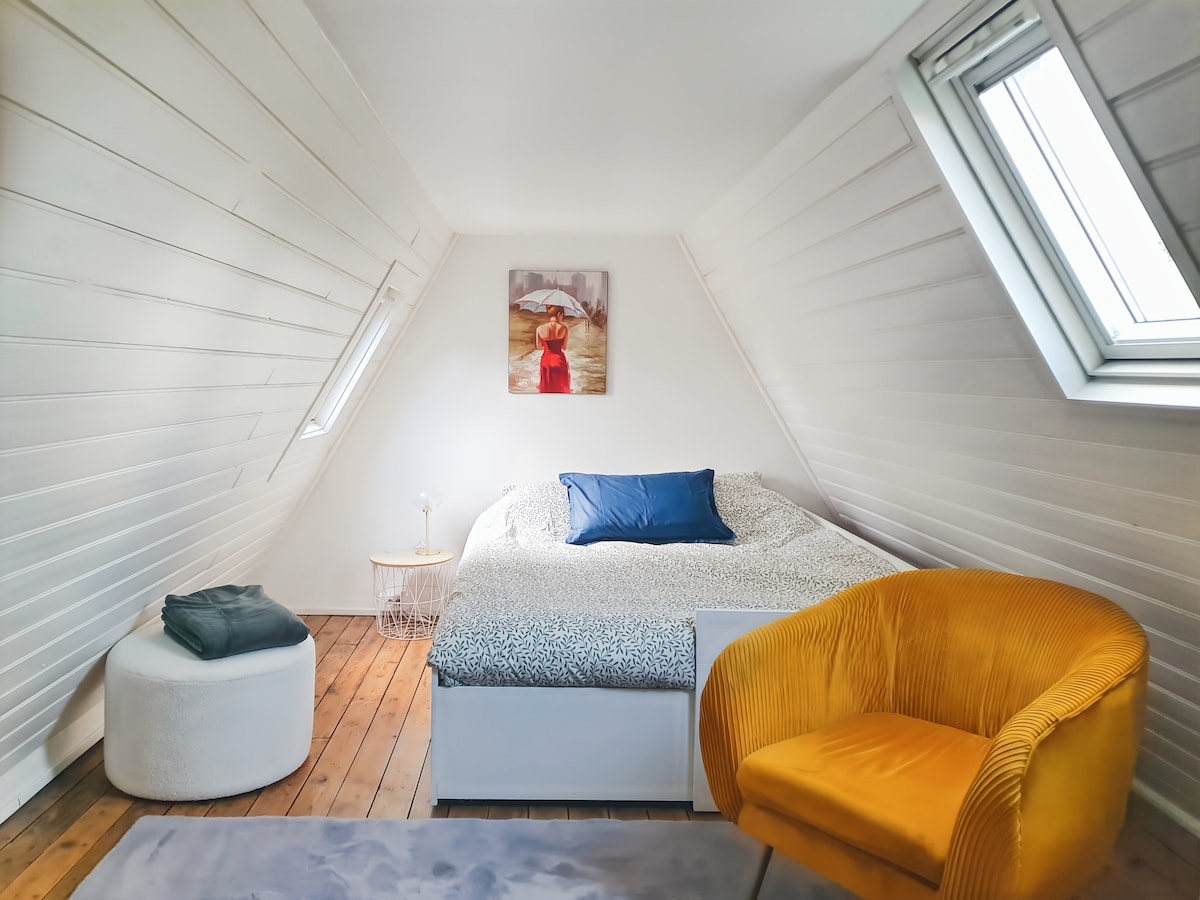 Bienvenue à La Porte Enchantée, un appartement lumineux au cœur du centre historique de Chartres. Vous profitez d’un lieu calme et confortable, soigneusement décoré. Depuis le salon, la vue sur les toits de la ville et la cathédrale offre un cadre apaisant, idéal pour se détendre ou travailler. Situé à Porte Guillaume, l’appartement permet de rejoindre l’hyper-centre à pied en quelques minutes. Des navettes gratuites au pied de l’immeuble facilitent l’accès à la gare et au centre-ville.