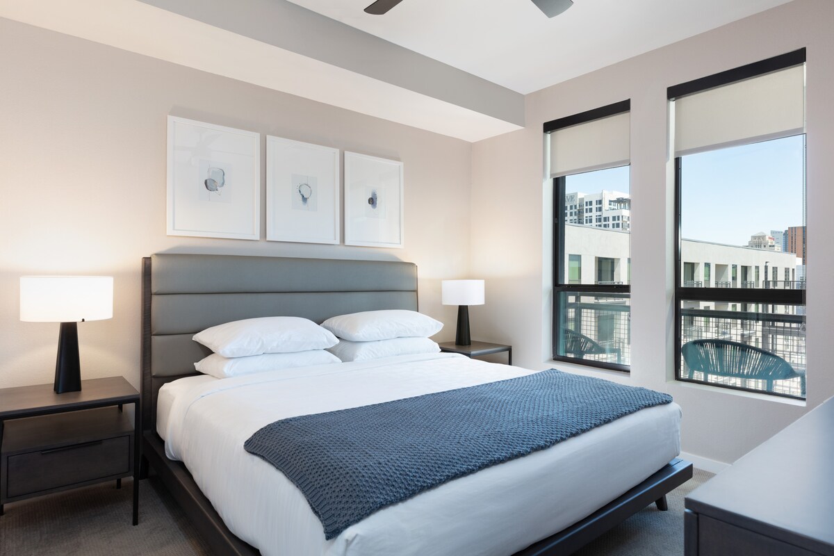 303M is a corner 1 bedroom unit with a private patio, located in a award-winning redevelopment complex - a vintage modern urban island in the heart of downtown Phoenix. No need for a car rental. Walk to just about everything Downtown: cafes, the convention center, stadiums, restaurants, museums & night life. Located @ HANCE Park Roosevelt Row Arts District & First Friday! quick access to all expressways to get you anywhere in the valley. ( 1mile to FOOTPRINT/CHASE stadiums. 4miles SKY HARBOR)