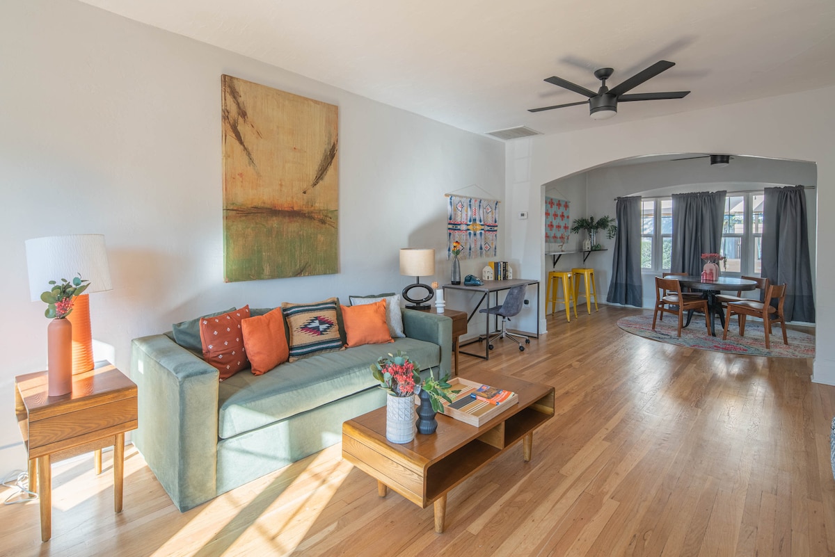 Your own private 1-bedroom guest house in the heart of historic Garfield—one of Phoenix’s most vibrant and artistic neighborhoods. You’ll be just blocks from downtown, the Convention Center, First Friday Artwalk, Roosevelt Row entertainment district, and the light rail, plus only steps from two of the city’s favorites: Gallo Blanco and Welcome Diner. Inside, enjoy all the comforts of home, including a full kitchen, in-unit washer/dryer, and AC. Outside, relax in your own private courtyard with s