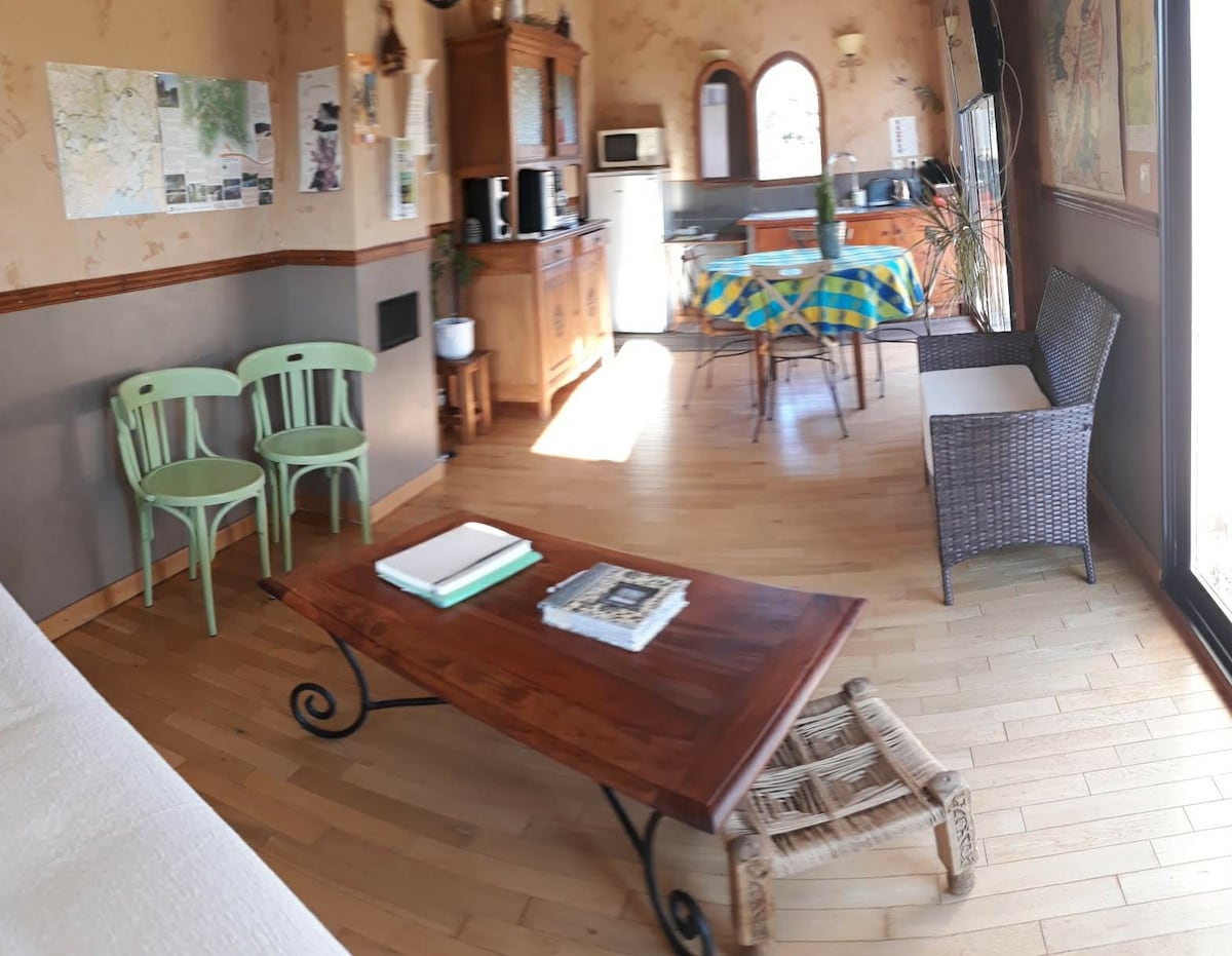 Si vous aimez la nature et les animaux, venez vivre une expérience unique chez nous. Notre domaine est idéal pour un séjour en famille ou entre amis, avec sa salle de 100 m² pour vos moments de convivialité, sa salle de cinéma et sa piscine. Les amateurs de randonnées seront comblés. Entourée de verdure et de forêts, notre maison accueille des familles avec leurs animaux. Ce choix, qui nous tient à cœur, peut laisser des traces malgré notre ménage rigoureux: Cela fait partie du charme du lieu.