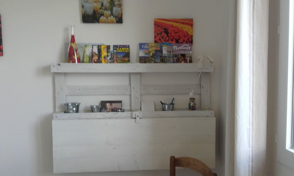 Notre maison se situe en Ardèche Méridionale à 10mn des Vans, dans un tout petit hameau en surplomb du Chassezac, à proximité de baignades secrètes et de balades enchantées, c'est une maison de pierres du XVII ème siècle qui abrite mon atelier de création et deux chambres d'hôtes. Un petit-déjeuner composé de produits faits maison ( pain, granola etc...), de produits frais issus de notre jardin ou de fermes avoisinantes installées en permaculture vous est offert.