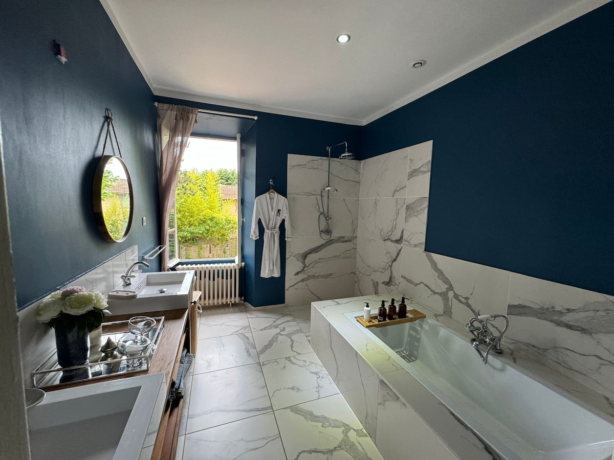 Si vous aimez la nature et les animaux, venez vivre une expérience unique chez nous. Notre domaine est idéal pour un séjour en famille ou entre amis, avec sa salle de 100 m² pour vos moments de convivialité, sa salle de cinéma et sa piscine. Les amateurs de randonnées seront comblés. Entourée de verdure et de forêts, notre maison accueille des familles avec leurs animaux. Ce choix, qui nous tient à cœur, peut laisser des traces malgré notre ménage rigoureux: Cela fait partie du charme du lieu.