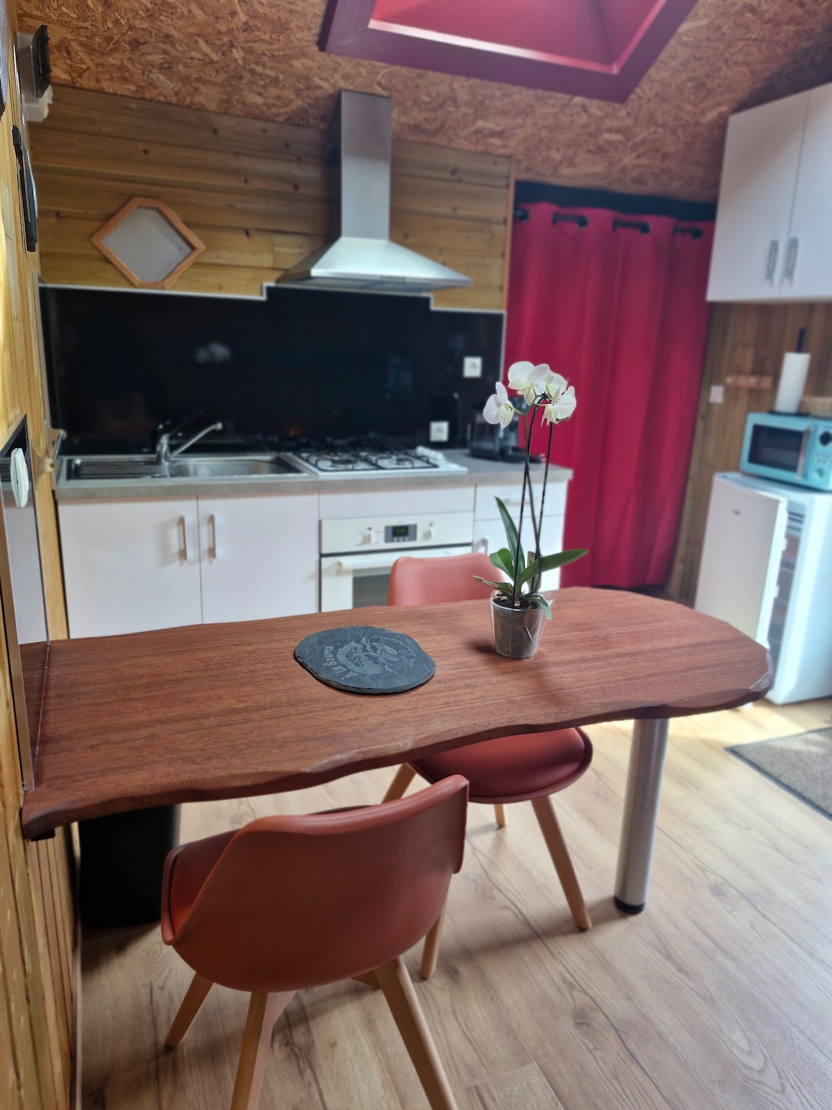 CHARMANT studio style cocooning classé 2 étoiles au 1 étg mansardé de 3 velux(rideau occultant) . entrée priv dans maison indv avec terrasse privée et terrain clos garage possible idéal pour 1 couple ou 1 pers +1 enf cuisine ,micro ondes ,four ,frigo , senseo, congél , raclette, grille pain, cafetière, bouilloire, fer a repasser , hôte, 3 gaz. espace de vie avec 1 lit 140x190 , 2 fauteuils +table repas 2 chaises ,TV, WIFI, radio ,s de b avec dche, wc, lavabo ,mobilier de jardin barbecue elec.