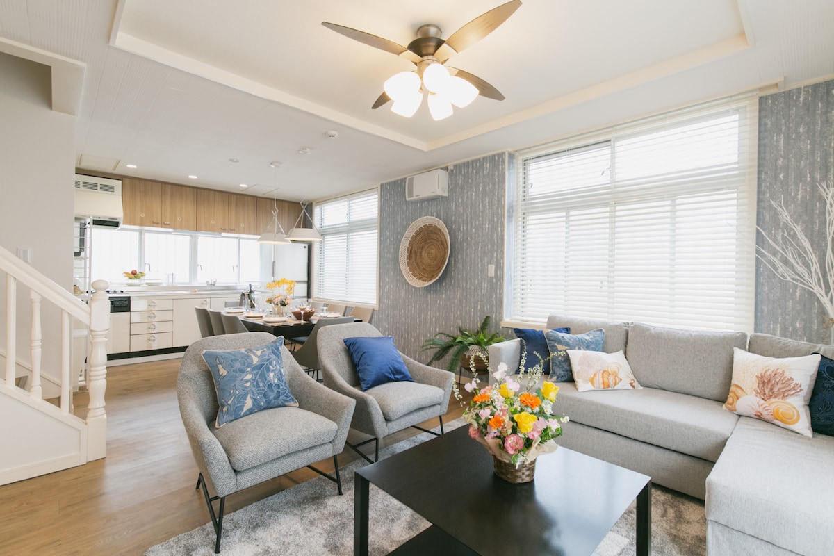 WELCOME TO OUR HOME AWAY FROM HOME. This is a very nice,space of 120 square meters or more, comfortable 2 bedroom house . We have IH cooker , full size refrigerator and freezer, and everything you need! It's a convenient, cozy, and clean house. 2bathrooms. High speed Wi-Fi is incorporated. *3 MINUTES TO THE SHOPPING MALL There is a shopping mall including supermarket, drag store, book store, several restaurant which is Japanese, Italian, Okinawan. Everything you need is right around the house.
