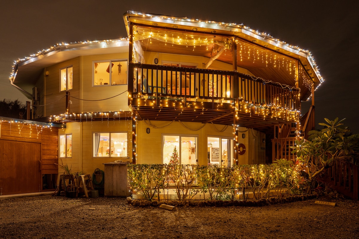 Oceanfront 3-bedroom vacation rental. Enjoy snorkeling and SUP for free on the private beach. In response to customer requests for rental cars, we will lend you our own Serena (8-seater) for free. You must apply for optional insurance 8 days in advance. We also have a new jacuzzi and sauna, so please feel free to use them. We also recommend a day trip to the Kerama Islands.