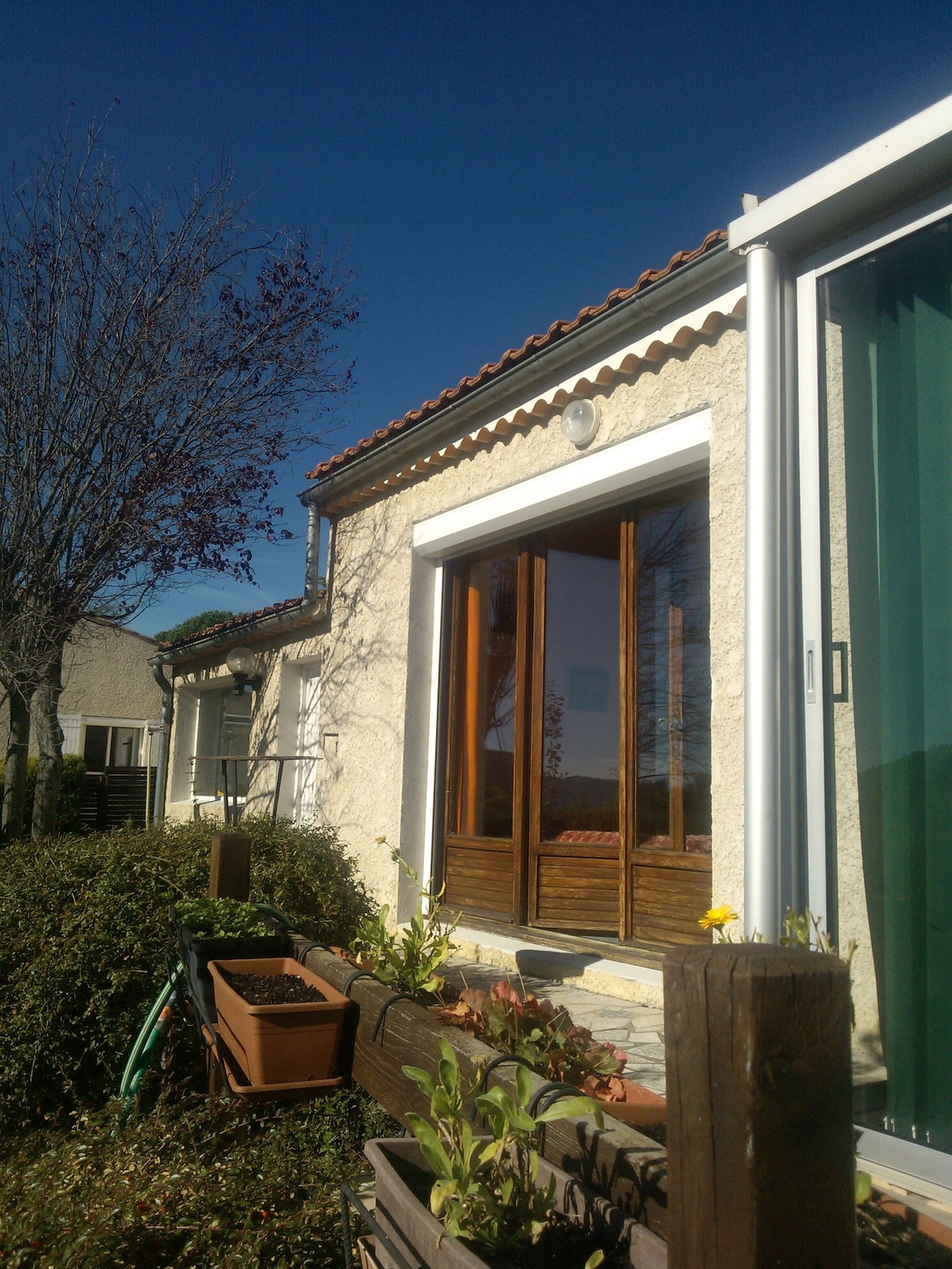 L' Hébergement se situe en dessous de notre habitation avec une entrée et une terrasse indépendante. Idéalement situé pour découvrir le département. Nous pourrons vous conseiller pour vos ballades, et des lieux de baignades durant l'été. Marché provençal à 10min à pied le dimanche matin. Départ sentiers VTT et randonnées à proximité immédiate. Votre voiture, vélos ou motos pourront être garés dans l'enceinte de la maison. Accès wifi illimité. Bienvenue !