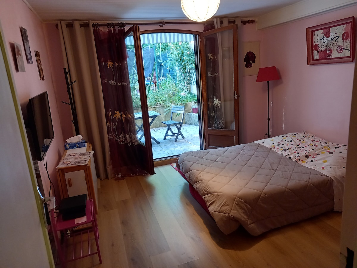带花园的大型单间公寓,靠近Maywen别墅