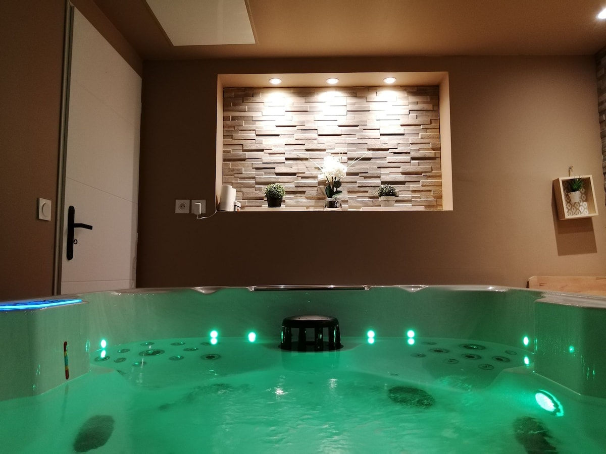 Venez vous détendre dans cette charmante maison qui sera le lieu idéal pour un séjour alliant bien-être et zénitude ! À la décoration chaleureuse et pouvant accueillir confortablement 4 personnes, la maison se compose au rez-de-chaussée d'un espace détente avec jacuzzi. À l'étage, vous trouverez un salon aménagé avec canapé, espace-repas et kitchenette équipée ; une première chambre avec lit double queen-size ; une seconde chambre avec 2 lits simples ; ainsi qu'une salle de bain avec douche.