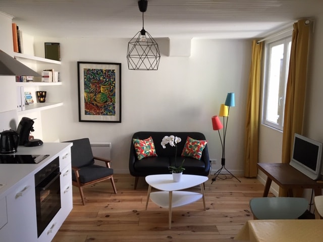 House of 95m2 with a ground floor (main living area), with direct access to a terrace and a small garden, and, a 1st floor with 2 bedrooms. Accommodation capacity: up to 7 adults (+ 1 or 2 infants) Other: • Internet by fiber • Place to park bikes inside the properties • There are 2 others tourism apartments on the site