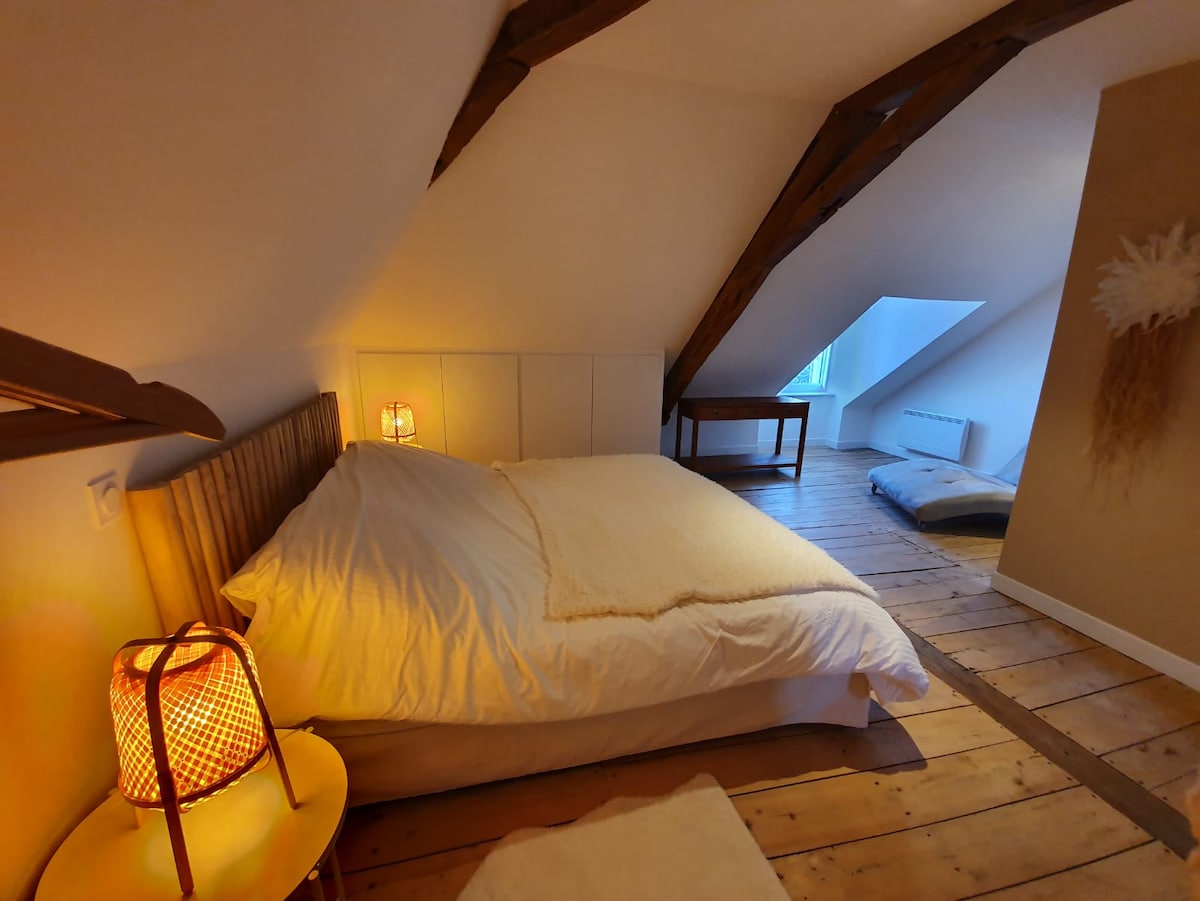 Jolie maisonnette fraîchement rénovée et climatisée, avec petite cour et salon de jardin, à 10 min à pied du coeur médiéval de Loches. Avec sa façade ancienne en colombage et son intérieur sur trois niveaux, alliant bois clair et modernité, cette maison atypique vous offrira un séjour douillet et chaleureux! Sa cuisine est aménagée, sa literie de qualité Bultex. Entrée indépendante. Accès INTERNET gratuit. Non fumeur. ☞NOUVEAUTÉ 2025 ! : Option "Nid d'am♡ur"! (voir plus bas)