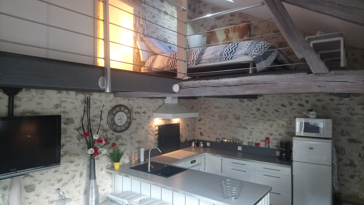 appartement cosy dans village au calme tout en étant proche de toutes les commodités. ce studio a été refait à neuf dans une belle longère se compose d'une pièce de vie avec cuisine équipée (plaque induction double micro-ondes réfrigérateur), canapé BZ, télé ainsi qu'une salle de bain avec douche, WC et machine à laver. Un lit double en mezzanine pouvant accueillir aussi un lit bébé. A proximité du château de Fontainebleau, Vaux le Vicomte, cité médiéval de Provins, disneyland à 35 minutes...