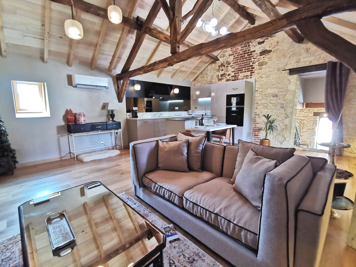 Center Located just a short four-minute walk from the Sarlat’s historic center, our charming accommodation offers a peaceful getaway near the public garden. Our large, 19th-century bourgeois house has been completely renovated while preserving authentic elements like stone beams and parquet flooring, giving you a truly unique and memorable experience.
