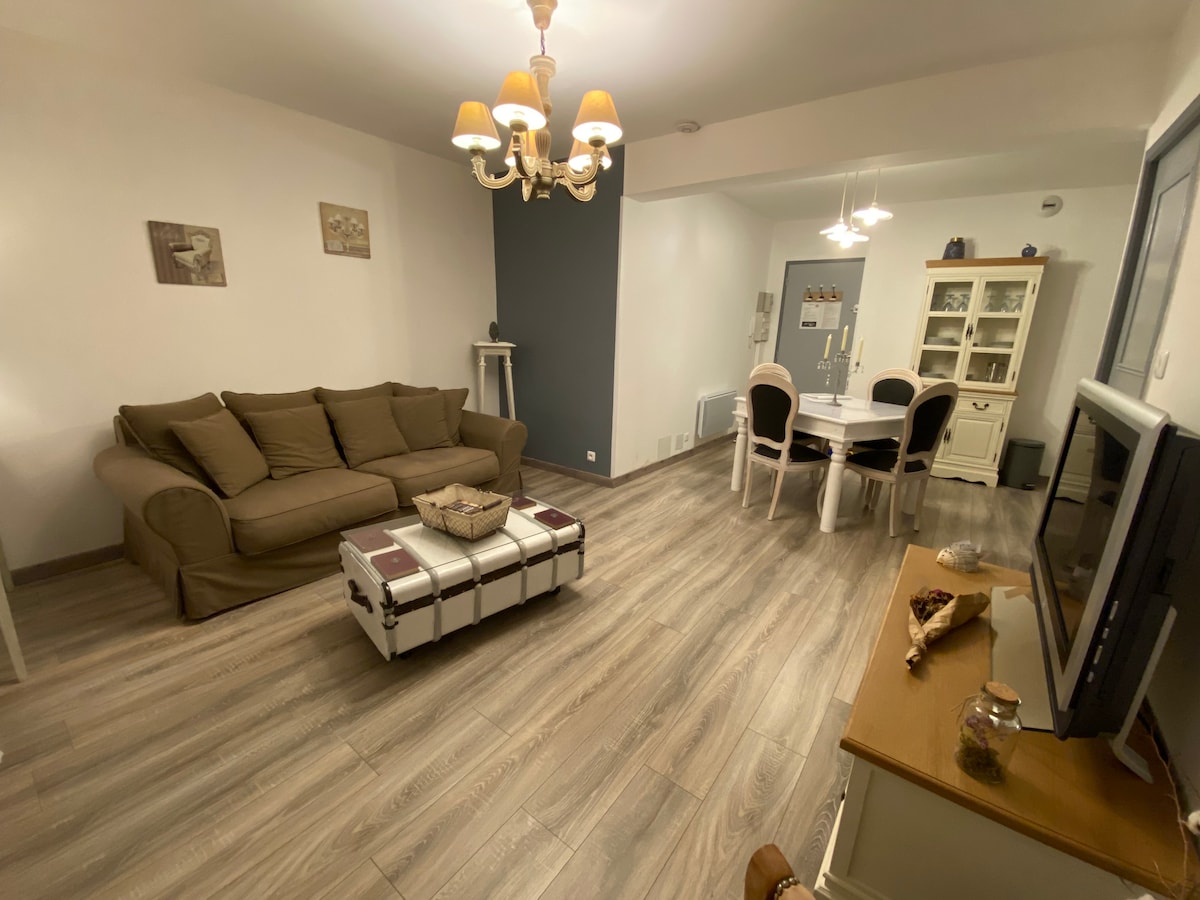 Appartement entièrement refait à neuf situé dans un quartier calme du centre ville de Sarlat avec parking public gratuit à 200m et commerces accessibles à pieds. Pour 2 personnes: Salon/séjour avec cuisine ouverte, coin repas, canapé et TV. A l'étage, salle d'eau avec douche et WC, Chambre avec grand lit (160) et rangements (penderies). Très lumineux et calme avec jolie vue sur les toits de la ville et les monuments emblématiques. Draps et linge fournis.