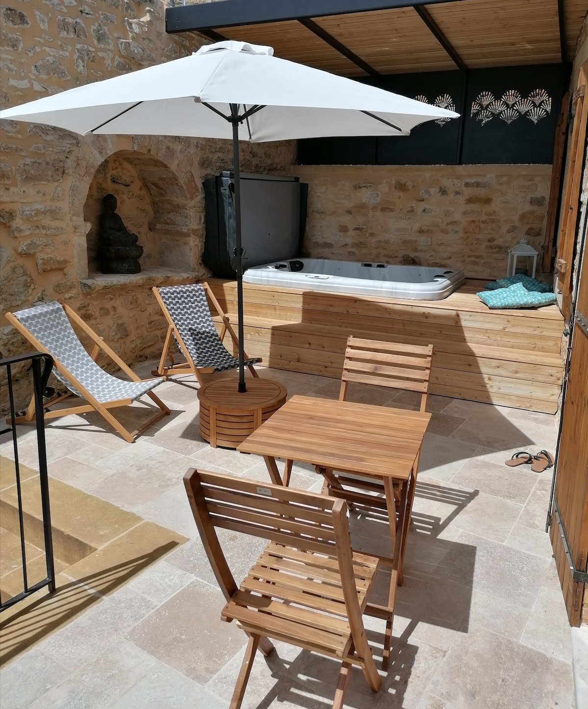 Maison indépendante sans vis-à-vis, en pierres située dans ancien hameau. Ce logement confortable vous séduira par sa décoration soignée ,son SPA privatif sera apprécié aprés de longues visites,son emplacement pour explorer Sarlat, les beaux villages,la vallée de la Dordogne, ses châteaux et tous les sites incontournables. Deux terrasses à votre disposition pour savourer un bon repas en plein air ou se détendre sur les transats. Eau du SPA changée aprés séjour. Piscine à partager propriétaire.