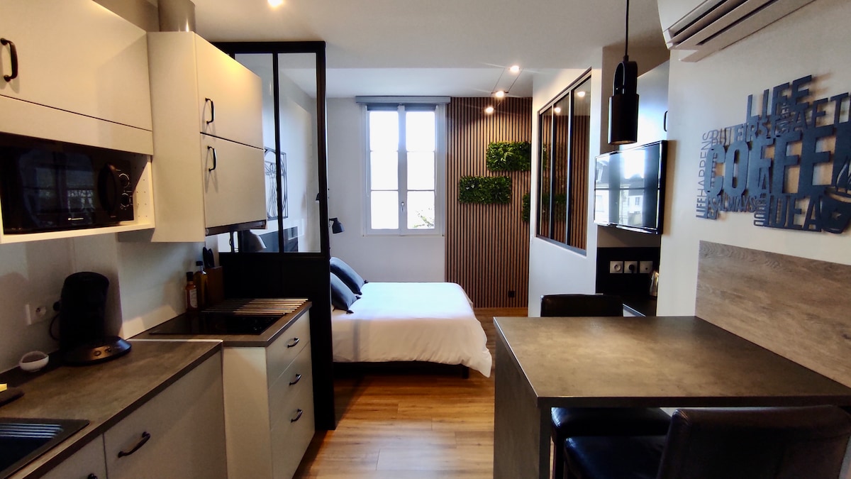 NEW: AIR CONDITIONING (2026) Our studio is ideally located in the historic and shopping center of Amboise. It lends itself as well to a tourist stay as to work. On the first floor of a historic house, it has a private courtyard in which a parking space is reserved for you. This makes it easy to roam the region and enjoy the center of Amboise on foot.